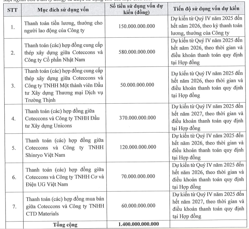 Coteccons dự kiến phát hành 14 triệu trái phiếu mệnh giá 100.000 đồng, kỳ hạn 3 năm, lãi suất 9%/năm, không có tài sản bảo đảm.