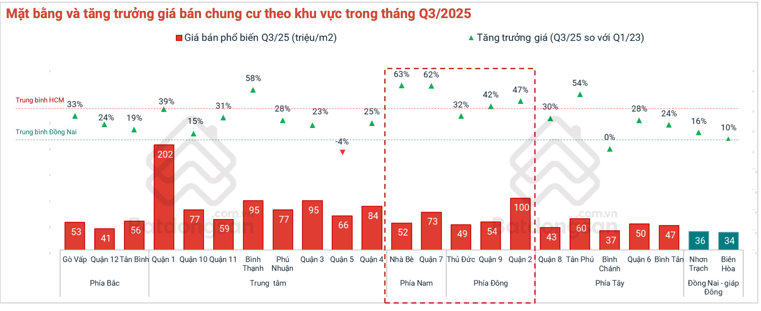 Bình quân toàn TP.HCM cũ: 99 triệu/m² (+35% so với năm trước).