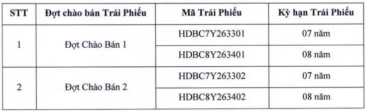 Mã HDBC7Y263301 (kỳ hạn 7 năm)