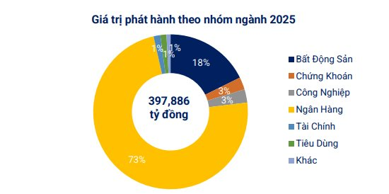 🏦 Ngân hàng vẫn là “đầu tàu”, chiếm tới 75% tổng lượng phát hành (17.614 tỷ đồng).